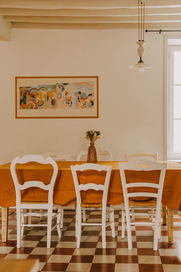 Dans la bibliothèque, vous trouverez une sélection variée de livres (romans, guides, livres d'art et de voyages, livres pour enfants…) ainsi que de nombreux jeux de société pour tous les âges. À l'étage, trois chambres et une salle de bain commune vous attendent. La première chambre, avec vue sur la cour, offre un lit en 160 et des placards de rangement. La deuxième, avec vue sur la place du village, dispose d'un lit en 160, d'un petit bureau et de placards. La dernière chambre, également avec vue sur la place du village, propose deux lits simples (90cm).
